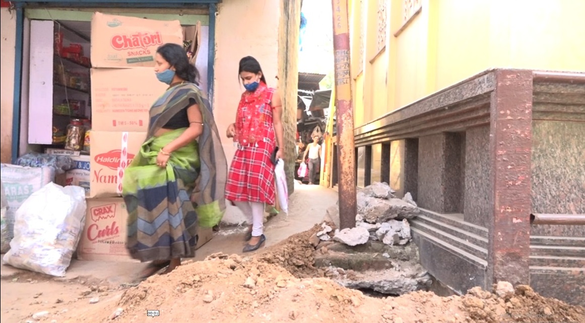 हीरापुर हटिया में सड़कों पर पोल लगाने के नाम पर गड्ढे कर छोड़ दिया