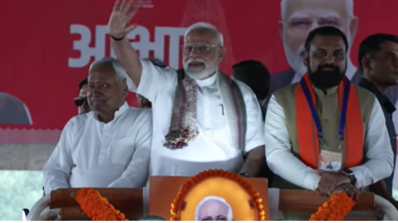 प्रधानमंत्री नरेंद्र मोदी आज बिहार दौरे पर हैं। गयाजी एयरपोर्ट पर उतरने के बाद वे बोधगया स्थित एएमयू परिसर में कार्यक्रम स्थल पर पहुंचे। पीएम मोदी खुली गाड़ी से लोगों का अभिवादन करते हुए मंच तक पहुंचे। इस दौरान मुख्यमंत्री नीतीश कुमार और दोनों डिप्टी सीएम सम्राट चौधरी एवं विजय सिन्ह भी उनके साथ ओपन जीप पर मौजूद रहे। सभी नेताओं ने सभा में मौजूद लोगों का अभिवादन स्वीकार किया। मंच पर प्रधानमंत्री नरेंद्र मोदी और मुख्यमंत्री नीतीश कुमार की जुगलबंदी देखने को मिली। दोनों नेताओं के बीच गर्मजोशी से चर्चा हो रही है।