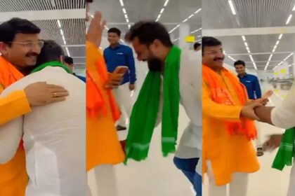 आरजेडी नेता खेसारी लाल यादव और बीजेपी सांसद मनोज तिवारी पटना एयरपोर्ट पर आमने-सामने हो गए। इस दौरान खेसारी लाल ने आपसी सौहार्द्र और सम्मान की मिसाल पेश करते हुए मनोज तिवारी के पैर छुए। इसके बाद मनोज तिवारी ने भी उन्हें गले लगा लिया। यह दृश्य देखकर वहां मौजूद लोग तालियां बजाने लगे. राजनीतिक मतभेदों के बावजूद दोनों कलाकारों के इस आपसी सम्मान और सौहार्द्र का वीडियो सोशल मीडिया पर तेजी से वायरल हो गया है।