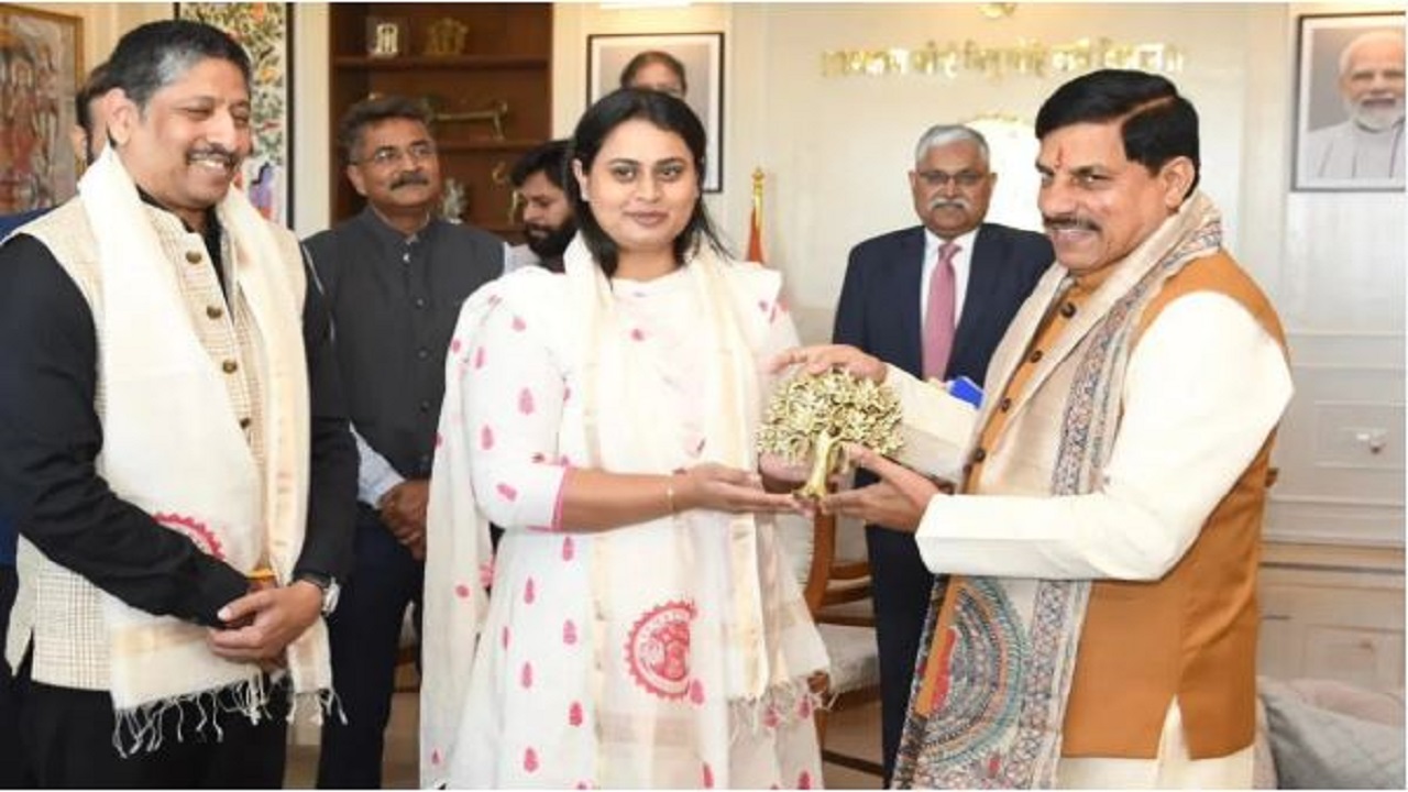 मध्य प्रदेश के मुख्यमंत्री डॉ. मोहन यादव ने अपने सरकारी आवास पर बिहार की खेल मंत्री श्रेयसी सिंह का अभिनंदन किया और खेलों के विकास के लिए दोनों राज्यों के बीच परस्पर समन्वय, तालमेल और पूर्ण सहयोग का आश्वासन दिया। इस दौरान श्रेयसी सिंह ने मुख्यमंत्री को मधुबनी साल और बोधि वृक्ष का प्रतीक चिन्ह भेंट कर सम्मानित किया, वहीं मुख्यमंत्री डॉ. मोहन यादव ने राम दरबार की मूर्ति भेंट कर खेल मंत्री श्रेयसी सिंह और बिहार राज्य खेल प्राधिकरण के महानिदेशक रवीन्द्रण शंकरण का अभिनंदन किया।