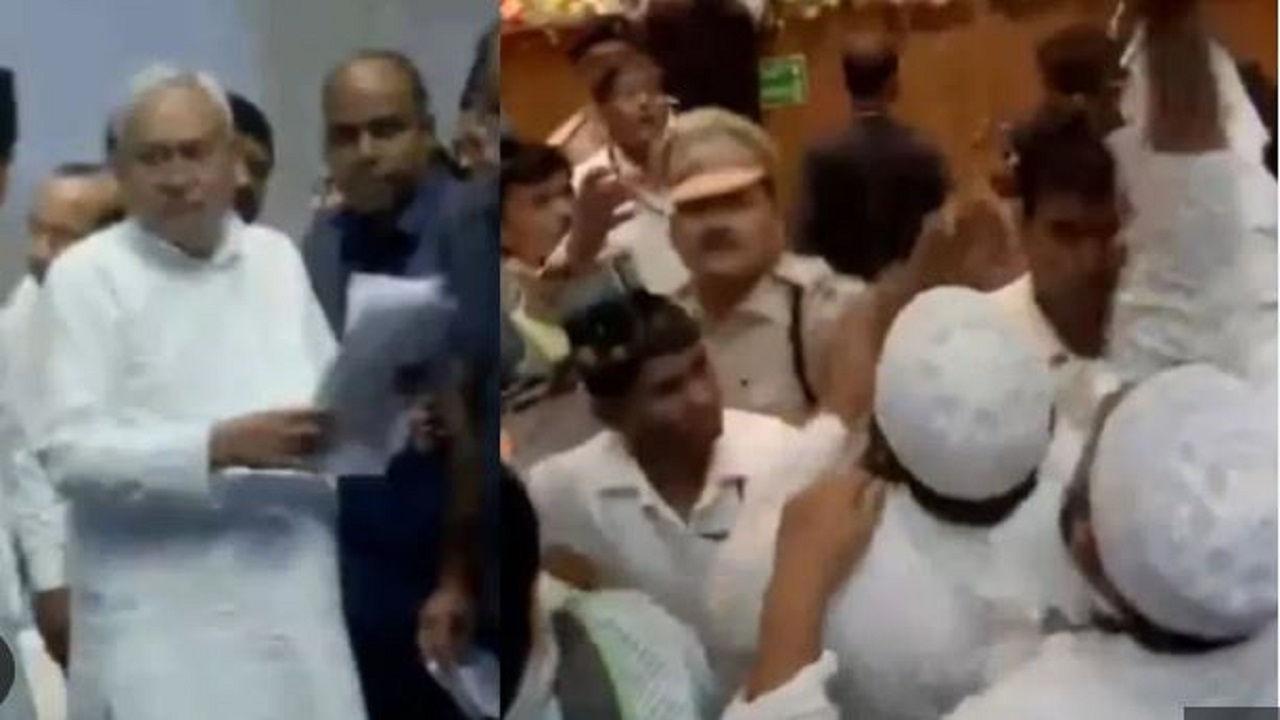 सीएम नीतीश कुमार मदरसा बोर्ड के 100वीं वर्षगांठ के लिए पहुंचे थे। इस समारोह में मदरसा शिक्षकों ने सीएम की स्पीच पूरी होने के बाद जमकर हंगामा किया। इस दौरान प्रतिभागियों के एक ग्रुप ने सीएम नीतीश कुमार को कुछ कागजात देने की कोशिश की। जिसमें लोग सीएम की तरफ कागज बढ़ाते दिख रहे हैं। नीतीश कुमार ने कुछ लोगों से उनके हाथ का कागज खुद लिया, लेकिन मदरसा शिक्षकों की नाराजगी बढ़ती देख नीतीश कुमार को वहां से निकाला गया।
