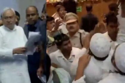 सीएम नीतीश कुमार मदरसा बोर्ड के 100वीं वर्षगांठ के लिए पहुंचे थे। इस समारोह में मदरसा शिक्षकों ने सीएम की स्पीच पूरी होने के बाद जमकर हंगामा किया। इस दौरान प्रतिभागियों के एक ग्रुप ने सीएम नीतीश कुमार को कुछ कागजात देने की कोशिश की। जिसमें लोग सीएम की तरफ कागज बढ़ाते दिख रहे हैं। नीतीश कुमार ने कुछ लोगों से उनके हाथ का कागज खुद लिया, लेकिन मदरसा शिक्षकों की नाराजगी बढ़ती देख नीतीश कुमार को वहां से निकाला गया।