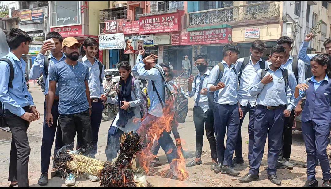 कोल्हान विश्वविद्यालय के कुलपति प्रोफेसर गंगाधर पांडे का पुतला फूंका