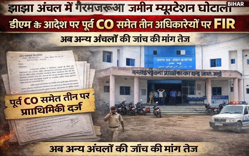 जमुई। जिले के झाझा अंचल कार्यालय में नामांतरण (म्यूटेशन) मामलों में गंभीर अनियमितता सामने आने के बाद जिलाधिकारी के आदेश पर बड़ी कार्रवाई की गई है। इस मामले में तत्कालीन…