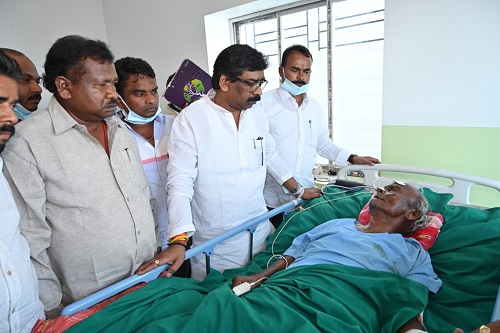 जमशेदपुर : मुख्यमंत्री हेमन्त सोरेन आज स्वर्णरेखा नर्सिंग होम घाटशिला पूर्वी सिंहभूम में इलाजरत पूर्व मंत्री यदुनाथ बास्के से मुलाकात करने पहुंचे। पूर्व मंत्री सह झामुमो के 95 वर्षीय वरिष्ठ नेता यदुनाथ बास्के को देखने झारखंड के मुख्यमंत्री हेमन्त सोरेन घाटशिला स्थित मौभण्डार स्पोर्ट्स क्लब ग्राउंड हेलीकाप्टर से पहुंचे। मैदान में स्थानीय प्रशासन द्वारा हेलीपैड का निर्माण कराया गया है। जमशेदपुर के उपायुक्त विजया जाधव, एसएसपी एम तमिल वणन, डीडीसी प्रदीप प्रसाद, एडीएम लॉ एंड ऑर्डर घाटशिला एसडीओ सत्यवीर रजक, एडीपीओ घाटशिला, डीएसपी मुसाबनी, डीपीआरओ मुख्यमंत्री के आगमन के लिए हेलीपैड के समक्ष थे। मुख्यमंत्री को गार्ड ऑफ ऑनर दी गई।