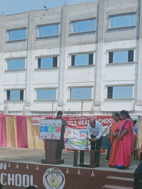जमशेदपुर : आरएनएफ लिटिल हार्ट स्कूल, नरवा पहाड़, जमशेदपुर के प्रांगण में तीन दिवसीय दुर्गोत्सव का शुभारंभ किया गया। जिसकी अध्यक्षता कार्यकारी प्रधान अध्यापिका कविता सिंह ने की। कार्यक्रम का शुभारंभ विद्यालय के निर्देशक संतोष अग्रवाल द्वारा दीप प्रज्वलित कर किया गया। दुर्गोत्सव में भिन्न-भिन्न तरह के नृत्य, भाषण- दुर्गा पूजा का महत्व व उपयोगिता, धुनुची नृत्य, दुर्गा मां की आंख की पेंटिंग आदि शामिल है जो अग्रिम 2 दिवसों में आयोजित किया जाएगा।