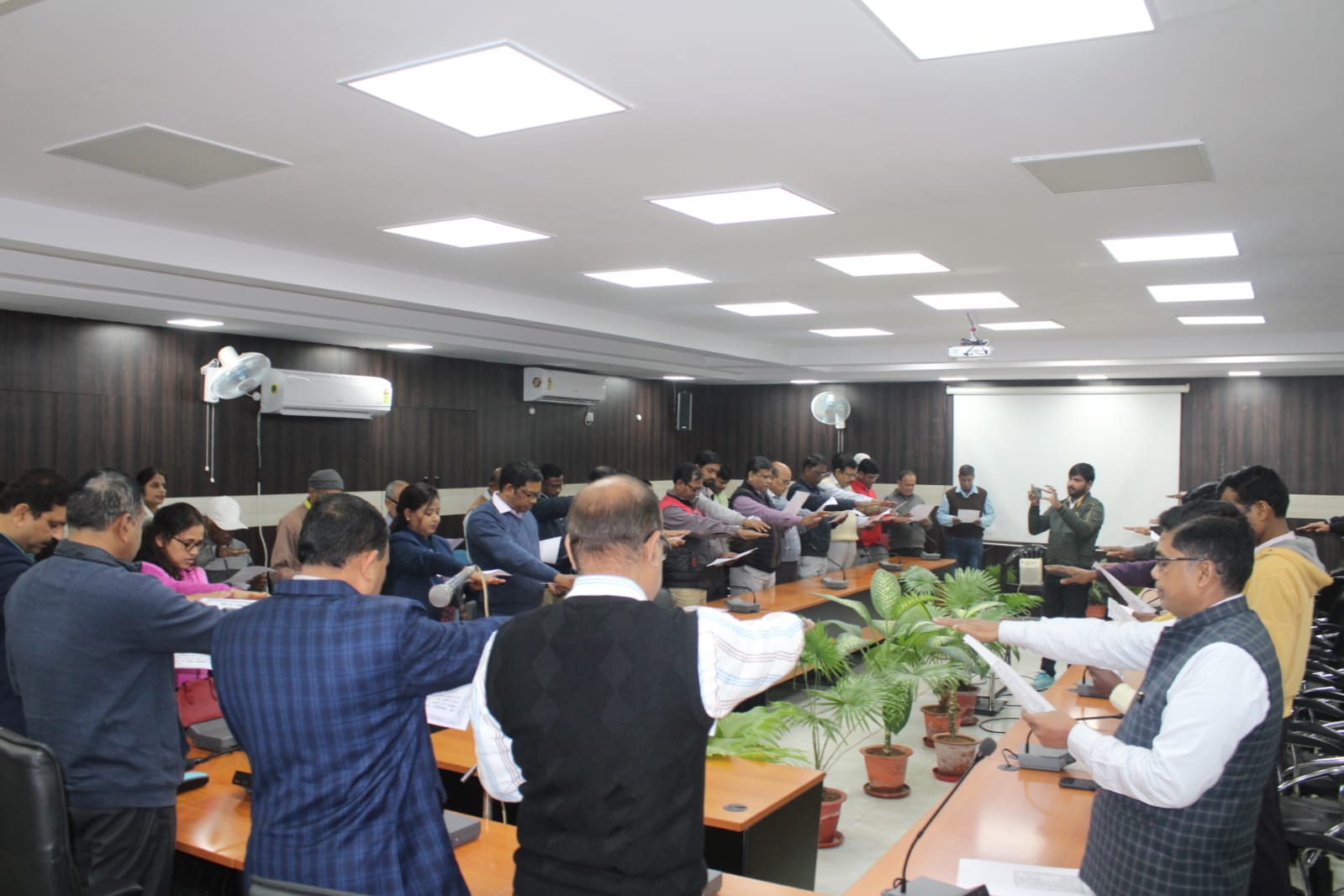 इस अवसर पर एडीएम लॉ एंड ऑर्डर नंदकिशोर लाल के साथ सभागार में उपस्थित सभी सदस्यों ने दोहराया कि हम, भारत के लोग, भारत को एक संपूर्ण प्रभुत्व संपन्न समाजवादी पंथ निरपेक्ष, लोकतंत्रात्मक गणराज्य बनाने के लिए तथा उसके समस्त नागरिकों को सामाजिक, आर्थिक और राजनैतिक न्याय, विचार, अभिव्यक्ति, विश्वास, धर्म और उपासना की स्वतंत्रता, प्रतिष्ठा और अवसर की समता प्राप्त करने के लिए तथा उन सबमें व्यक्ति की गरिमा और राष्ट्र की एकता और अखण्डता सुनिश्चित करनेवाली बंधुता बढाने के लिए दृढ संकल्प होकर अपनी इस संविधान सभा में आज की तारीख 26 नवंबर, 1949 ई0 को एतद द्वारा इस संविधान को अंगीकृत, अधिनियमित और आत्मार्पित करते हैं।