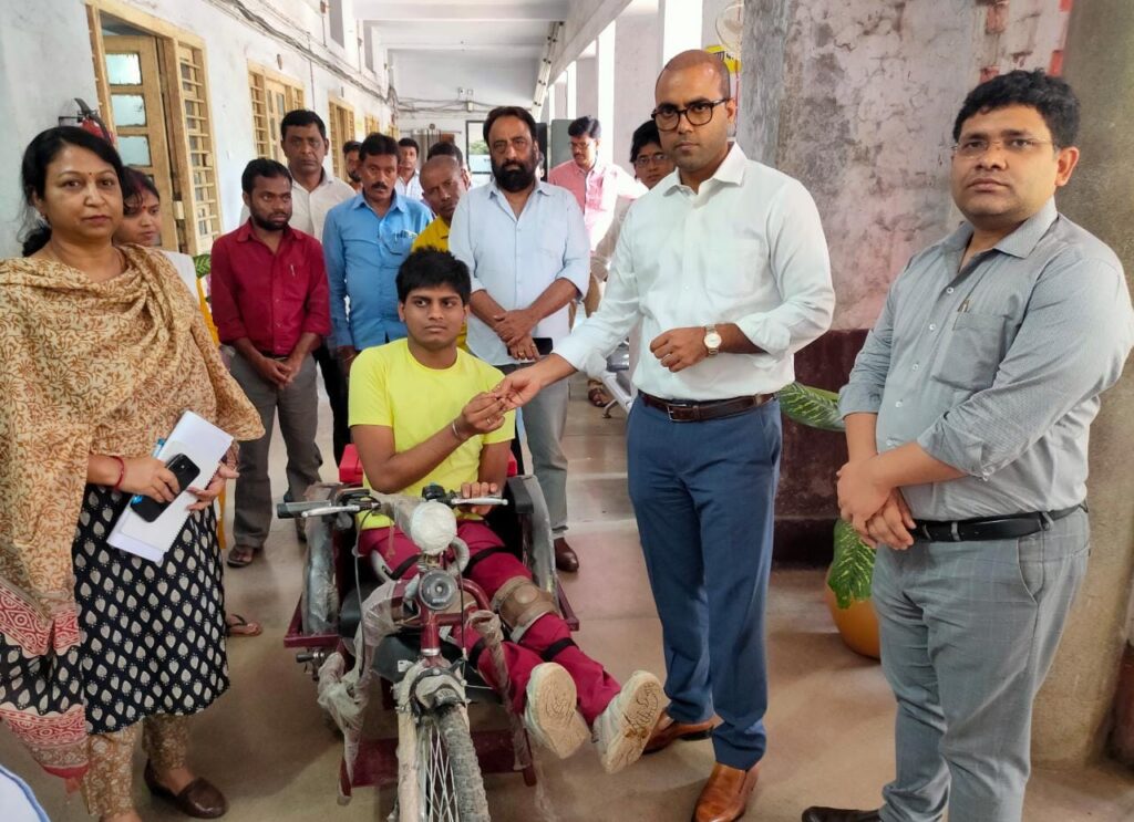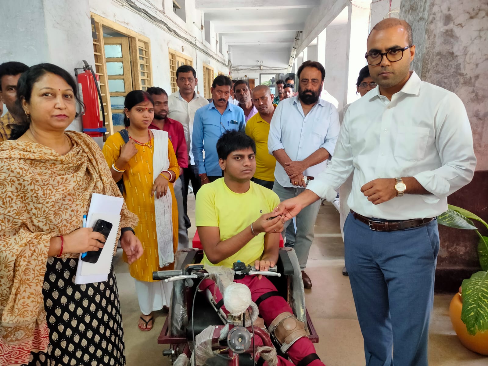 मिरर मीडिया : जिला समाहरणालय परिसर में उपायुक्त सह जिला दंडाधिकारी संदीप सिंह के द्वारा शुक्रवार को धनबाद हाउसिंग कॉलोनी निवासी दिव्यांग बालक अनमोल कुमार को दिव्यांग यंत्र एवं उपकरण के तहत बैटरी चलित ट्राई साइकिल की चाभी सौंपी गयी।