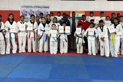 धनबाद। द राइट ट्रेक ताइक्वांडो अकैडमी के बच्चों ने ग्रीन बेल्ट हासिल कर धनबाद का नाम गर्व से ऊँचा कर दिया। सेंटर पॉइंट, बैंक मोड़ धनबाद स्थित अकैडमी में बेल्ट ग्रेडिंग टेस्ट एवं सम्मान समारोह का आयोजन किया गया। कार्यक्रम में मुख्य अतिथि रोटी बैंक के अध्यक्ष श्री रवि शेखर द्वारा बच्चों को बेल्ट और सर्टिफिकेट प्रदान कर सम्मानित किया गया।