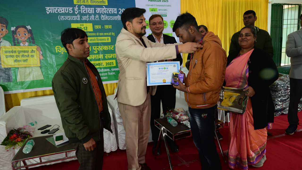 इस अवसर पर कुल 101 चयनित छात्रों के साथ-साथ संबंधित विद्यालयों के आईसीटी इंस्ट्रक्टरों को भी सम्मानित किया गया। जिला स्तर पर चयनित छात्रों को स्मार्ट वॉच, गोल्ड मेडल एवं प्रमाण पत्र, जबकि प्रखंड स्तर पर चयनित छात्रों को बैग, मेडल एवं प्रमाण पत्र दिए गए।