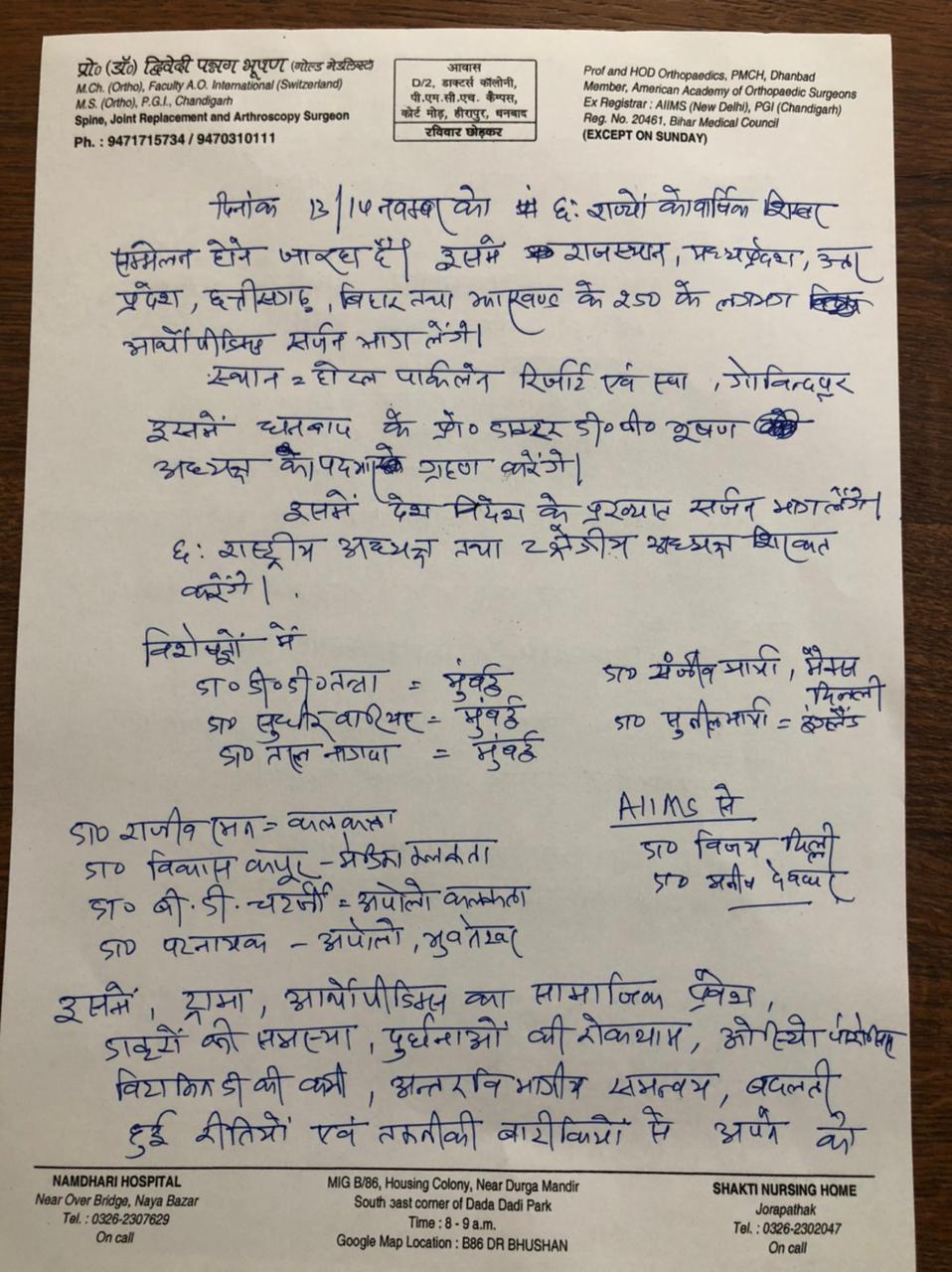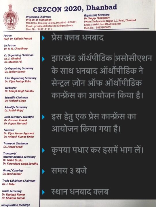 13 और 14 नवंबर को धनबाद के पार्क लेन रिसोर्ट में आयोजित होगा हड्डी रोग विशेषज्ञ डॉक्टरों की वार्षिक सम्मेलन
