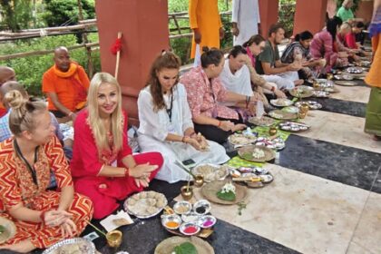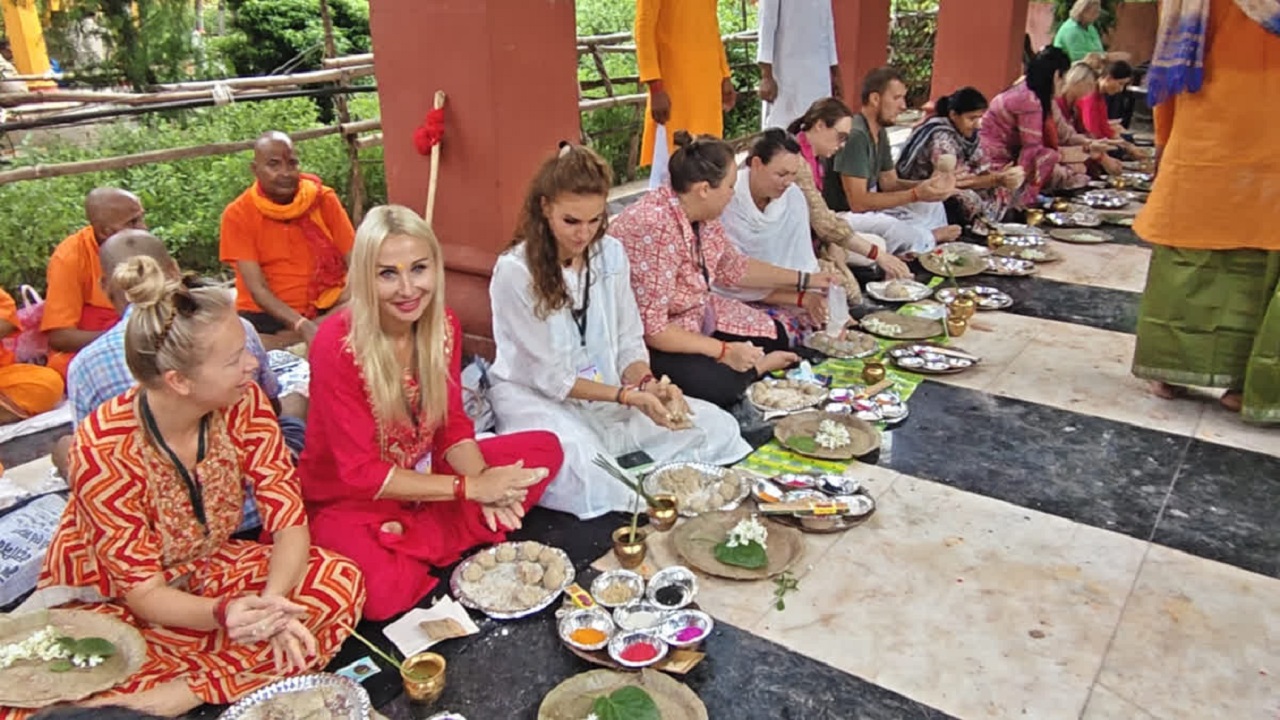 भारतीय परिधान में तर्पण करते दिखे विदेशी श्रद्धालु