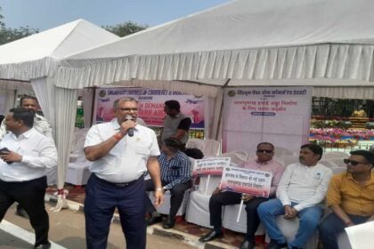 डिजिटल डेस्क। जमशेदपुर: बिष्टुपुर का पोस्टल पार्क शनिवार को व्यापारियों और उद्यमियों के आक्रोश का गवाह बना। सिंहभूम चैंबर ऑफ कॉमर्स एंड इंडस्ट्री ने धालभूमगढ़ में प्रस्तावित एयरपोर्ट के निर्माण में हो रही अत्यधिक देरी के खिलाफ जोरदार धरना-प्रदर्शन किया। सात साल पहले जिस परियोजना का शिलान्यास बड़े दावों के साथ किया गया था, उसका काम आज भी अधर में लटका है।