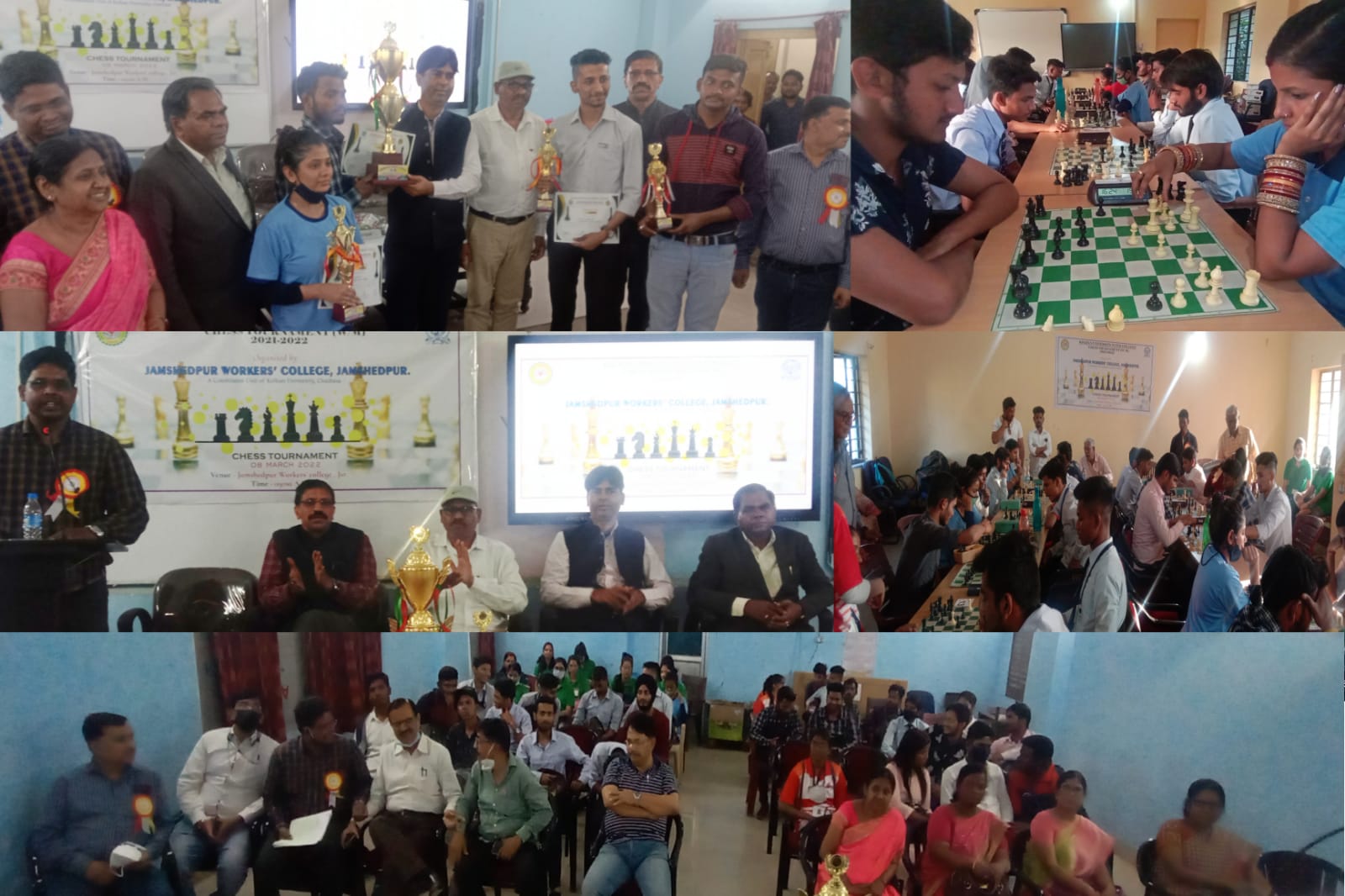 जमशेदपुर। वर्कर्स महाविद्यालय के प्रांगण में अन्तर महाविद्यालय शतरंज प्रतियोगिता का आयोजन किया गया। इस प्रतियोगिता में कोल्हान विश्वविद्यालय के वर्कर्स कॉलेज, घाटशिला कॉलेज, करीम सिटी कॉलेज, कॉपरेटिव कॉलेज, ग्रेजुएट कॉलेज, वीमेंस कॉलेज, टाटा कॉलेज, मेरीलैंड कॉलेज, टीएमएच एवं एबीएम कॉलेज के 32 प्रतिभागियों ने हिस्सा लिया। यह प्रतियोगिता 6 राउंड में सम्पन्न हुई। इस प्रतियोगिता के चीफ ऑर्बिटर श्री जयंत कुमार भुइयां तथा असिस्टेंट ऑर्बिटर श्री चिरंजीव लाल एवं श्री अवधेश कुमार थे। प्रतियोगिता की समाप्ति पर आयोजित समारोह के मुख्य अतिथि कोल्हान विश्वविद्यालय के कुलसचिव प्रो. डॉ. जयंत शेखर, तथा सम्मानित अतिथि कोल्हान विश्वविद्यालय शाखा के शाखा समन्वयक डॉ. आर. के. चौधरी थे।समारोह में सभी का स्वागत करते हुए जमशेदपुर वर्कर्स महाविद्यालय के प्राचार्य डॉ एस पी महालिक ने कहा ऐसी स्पर्धाओं से मानसिक विकास के साथ साथ बौद्धिक विकास होता है। मुख्य अतिथि कुलसचिव डॉ जयंत शेखर ने अपने संबोधन में शतरंज की पौराणिक कथा का जिक्र करते हुए कहा कि शतरंज का खेल मानसिक एकाग्रता को बढ़ाता है एवं मन के भटकाव को रोकता है।प्रतियोगिता के परिणाम की घोषणा चीफ ऑर्बिटर श्री जयंत कुमार भुइयां ने किया। मुख्य अतिथि एवं सम्मानित अतिथि के द्वारा सभी विजेताओं को ट्रॉफी एवं प्रशस्ति पत्र देकर सम्मानित किया गया। सभी प्रतिभागियों को महाविद्यालय के शिक्षकों के द्वारा प्रमाणपत्र प्रदान किया गया। कार्यक्रम का संचालन प्रो सुभाषचंद्र दास ने किया, धन्यवाद ज्ञापन डॉ अनिलचंद्र पाठक ने किया। इस शतरंज प्रतियोगिता में आयोजन समिति के चेयरमैन डॉ ए के महापात्रा, खेल प्रभारी डॉ सुमन कुमारी, समन्वयक प्रो. सुभाषचंद्र दास, सदस्य डॉ अनिल चंद्र पाठक, डॉ जावेद इक़बाल, डॉ. प्रीतिबाला सिन्हा, सुशांतो राउत ने महत्वपूर्ण योगदान दिया।