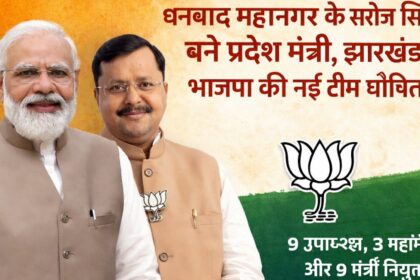 झारखंड बीजेपी की नई कार्यकारिणी घोषित, 9 उपाध्यक्ष, 3 महामंत्री और 9 मंत्री नियुक्त : धनबाद महानगर के प्रदेश मंत्री बने सरोज सिंह