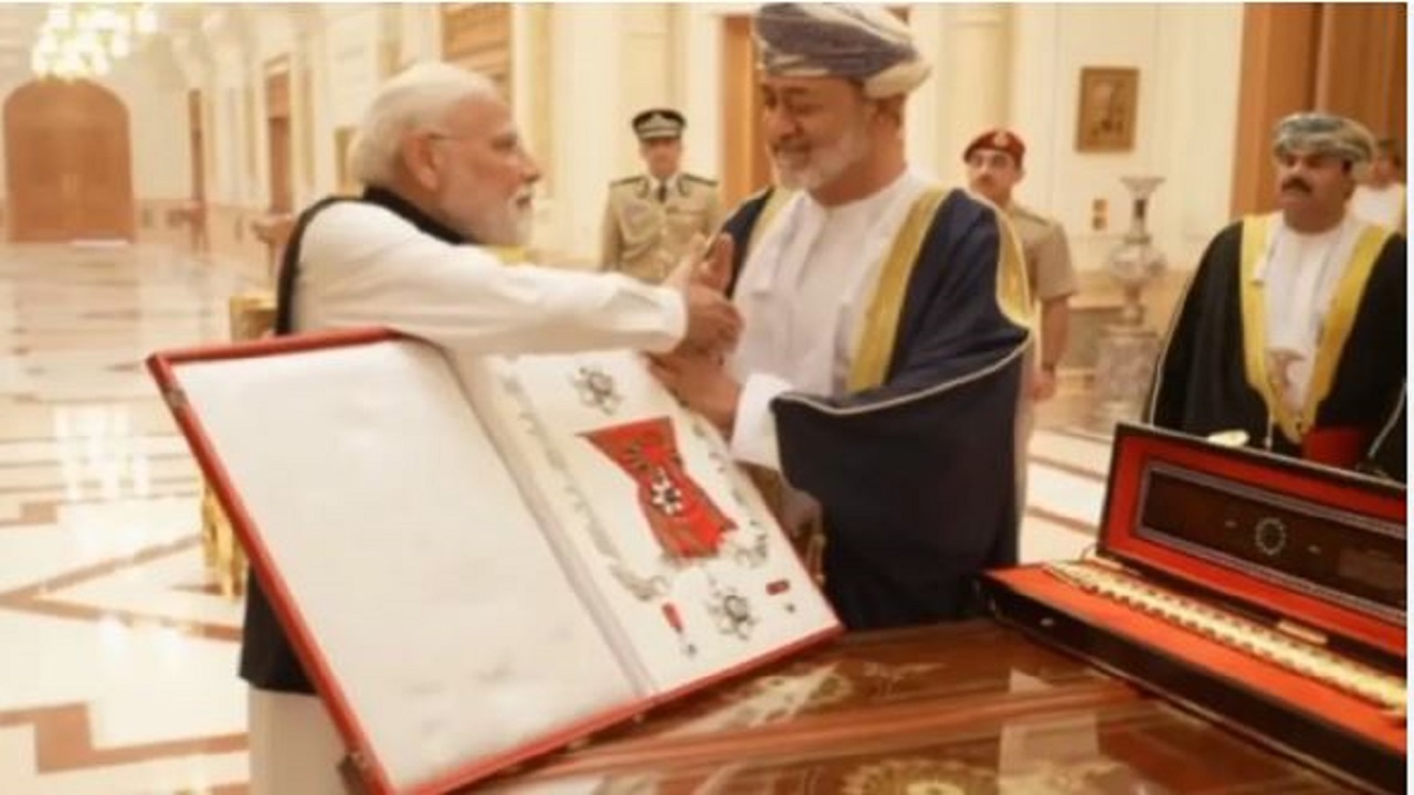 प्रधानमंत्री नरेंद्र मोदी को गुरुवार को ओमान की दो दिवसीय यात्रा के दौरान वहां के सर्वोच्च नागरिक सम्मान ‘ऑर्डर ऑफ ओमान’ से सम्मानित किया गया। गुरुवार को ओमान के सुल्तान हैथम बिन तारिक ने द्विपक्षीय संबंधों को नई ऊंचाइयों पर ले जाने के लिए प्रधानमंत्री मोदी को ओमान के विशेष नागरिक सम्मान ‘ऑर्डर ऑफ ओमान’ से नवाजा।