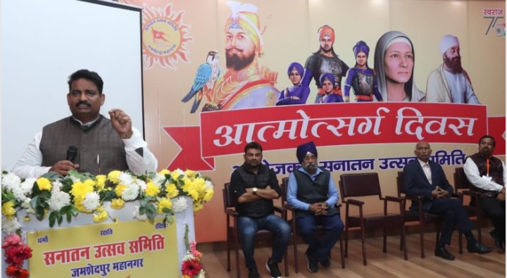 जमशेदपुर। शनिवार को माइकल जॉन ऑडोटोरियम हॉल बिस्टुपुर जमशेदपुर में संध्या 3 बजे सनातन उत्सव समिति द्वारा आयोजित गुरु गोबिंद सिंह जी के पूरे परिवार की शहादत दिवस को शहादत पखवाड़ा के रूप में आत्मोत्सर्ग दिवस के रूप में मनाई गई।