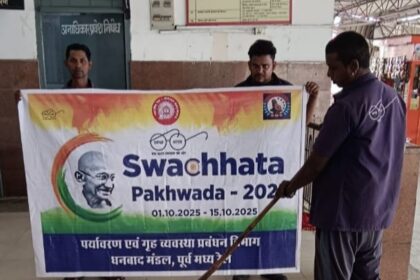 धनबाद: “स्वच्छता पखवाड़ा – 2025” के अंतर्गत धनबाद मंडल में स्वच्छता अभियान लगातार जारी है। 12 अक्टूबर 2025 को पखवाड़े के बारहवें दिन धनबाद मंडल के विभिन्न स्टेशनों, डिपो, अस्पतालों और कार्यालयों में व्यापक स्तर पर शौचालयों की विशेष सफाई और परिसरों की स्वच्छता सुनिश्चित करने के लिए अभियान चलाया गया।
