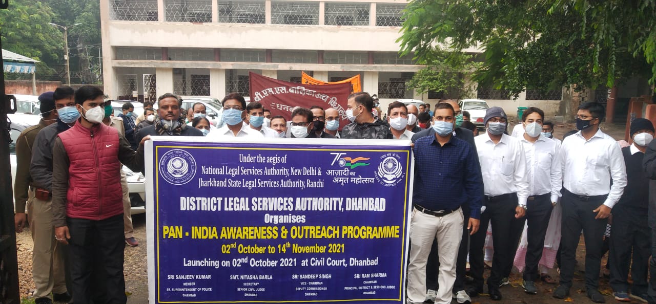लोगों को अपने अधिकारों के प्रति जागरूक बनाने के लिए बाल दिवस पर धनबाद के तमाम न्यायिक पदाधिकारी, जिला प्रशासन के  पदाधिकारी ,सिविल कोर्ट कर्मचारी, जिला विधिक सेवा प्राधिकार के पैनल अधिवक्ता, पैरा लीगल वालंटियर और स्कूली बच्चे रविवार को हाथ में बैनर पोस्टर लिए सड़क पर उतरें।  पदयात्रा सुबह 7:00 बजे सिविल कोर्ट कैंपस से शुरू होकर रणधीर वर्मा चौक होते हुए पुनः सिविल कोर्ट पहुंची। इस मौके पर न्यायाधीश शर्मा ने कहा कि राष्ट्रीय विधिक सेवा प्राधिकार के निर्देश पर जिले में 2 अक्टूबर से लेकर 14 नवंबर तक आजादी का अमृत महोत्सव मनाया गया है। जिसकी शुरुआत पदयात्रा से हुई थी और समापन भी पदयात्रा से हुआ।