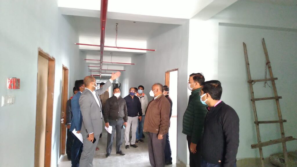 उन्होंने विभिन्न विभागों के लिए निर्मित कमरे, एप्रोच रोड, सभाकक्ष, पार्किंग, निकास एवं प्रवेश मार्ग के निर्माण, फायर फाइटिंग सिस्टम सहित सभी प्रकार के सिविल कार्य के प्रगति की समीक्षा कर आवश्यक दिशा निर्देश दिए।