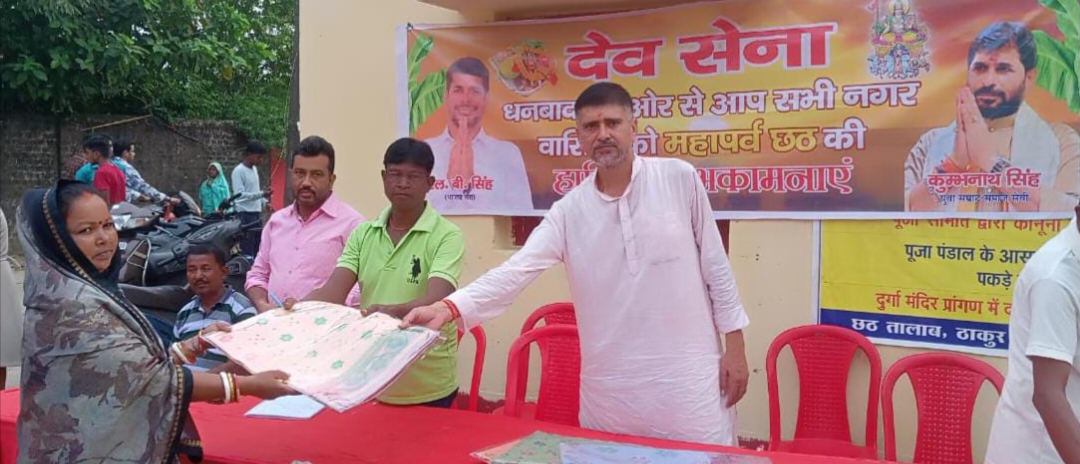 आज देव सेना समाजसेवी कुंभ नाथ सिंह की ओर से छठ व्रतियों के बीच साड़ियों का वितरण किया गया।
