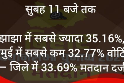 जमुई जिले की चारों विधानसभा सीटों पर 11 बजे तक का मतदान प्रतिशत