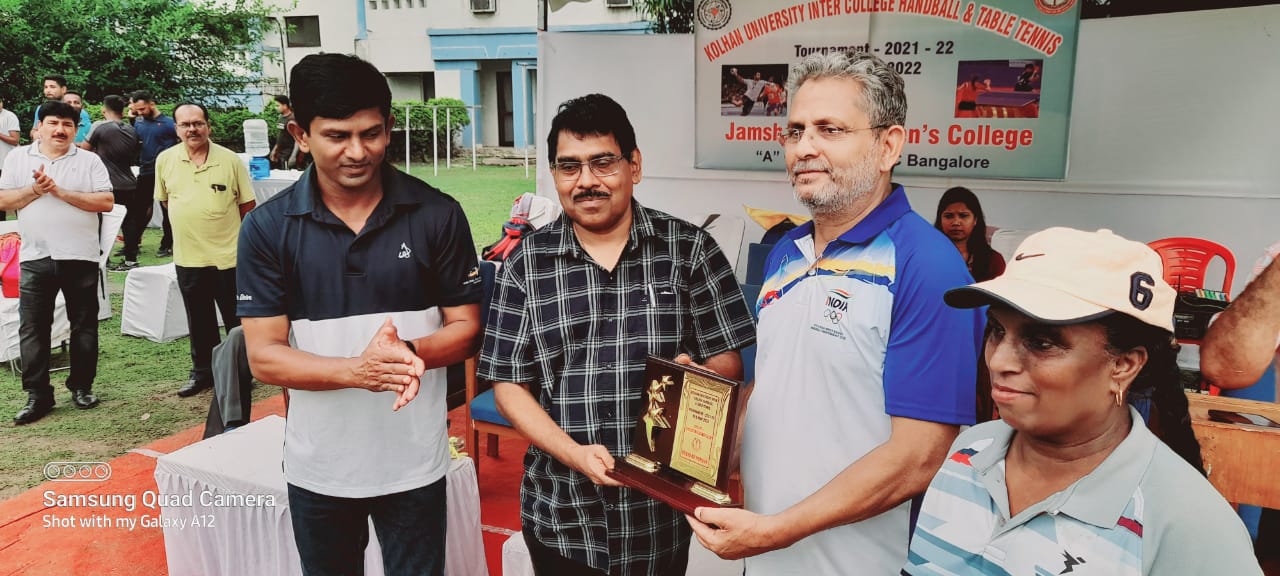 जमशेदपुर। वीमेंस कॉलेज के तत्वावधान में कोल्हान विश्वविद्यालय अंतर महाविद्यालयी हैंडबॉल और टेबल टेनिस प्रतियोगिता (पुरुष एवं महिला) का आयोजन जेआरडी टाटा स्पोर्ट्स कंपलेक्स में 11 मई को संपन्न हुआ। प्राचार्य डॉ. सुधीर कुमार साहू ने कहा कि 11 मई को सुबह 8 बजे उद्घाटन समारोह का आयोजन किया गया जिसमें केयू के खेल पदाधिकारी डॉ. मन्मथ नारायण सिंह उपस्थित थे। समापन समारोह के मुख्य अतिथि ग्रामीण एसपी मुकेश कुमार लुनायत ने खिलाड़ियों का उत्साहवर्धन किया और कहा कि खेल में हिस्सा लेना ही सबसे बड़ी लर्निंग होती है। आप सभी परिश्रम करें और जीवन में सफल बने। प्राचार्य ने कोल्हान विश्वविद्यालय और जमशेदपुर वीमेंस कॉलेज की तरफ से सभी का स्वागत किया और खिलाड़ियों द्वारा दिखाये गए अनुशासन और खेल भावना को सराहा। समारोह को विशिष्ट अतिथि ओलिंपियन आनंद लुईस मेनेंजेस, अंतरराष्ट्रीय हैंडबाल खिलाड़ी फिरोज खान, केयू के सीनेटर डॉ. ब्रजेश कुमार, जेआरडी टाटा स्पोर्ट्स कॉम्प्लेक्स के पदाधिकारी एवं अंतरराष्ट्रीय हैंडबॉल कोच हसन इमाम मल्लिक ने भी संबोधित किया। संचालन खेल प्रभारी डॉ राजेंद्र कुमार जायसवाल व धन्यवाद ज्ञापन डॉ. अविनाश कुमार सिंह ने किया। मौके पर को ऑपरेटिव कॉलेज के खेल प्रभारी डॉ. भूषण कुमार सिंह, डॉ. संजोय भुईयां सहित श्रीनाथ बीएड कॉलेज, डीबीएमएस बीएड कॉलेज के टीम मैनेजर सहित, आर. तेजा, ज्योति मुक्ता बारला, प्रभात कुमार आदि मौजूद रहे। ये हुए विजेता: हैंडबॉल (महिला) विजेता- जमशेदपुर को – ऑपरेटिव कॉलेज उपजेता- जमशेदपुर वीमेंस कॉलेज तृतीय स्थान- डीबीएमएस बीएड कॉलेज: हैंडबॉल (पुरूष) विजेता- जमशेदपुर को – ऑपरेटिव कॉलेज उपजेता- डीबीएमएस बीएड कॉलेज तृतीय स्थान- श्रीनाथ बीएड कॉलेज: टेबल टेनिस (महिला) विजेता- जमशेदपुर वीमेंस कॉलेज उपजेता- श्रीनाथ बीएड कॉलेज तृतीय स्थान- डीबीएमएस बीएड कॉलेज: टेबल टेनिस (पुरूष) विजेता- डीबीएमएस बीएड कॉलेज उपजेता- श्रीनाथ बीएड कॉलेज